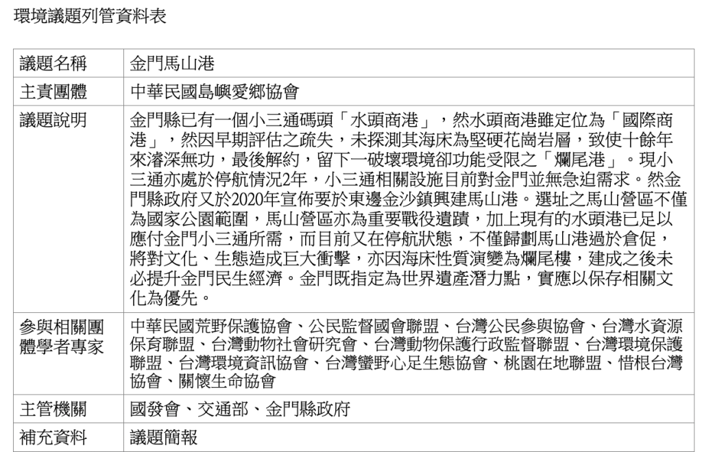 • 金馬聯合服務中心、本會、台灣公民參與協會及金門人士參與