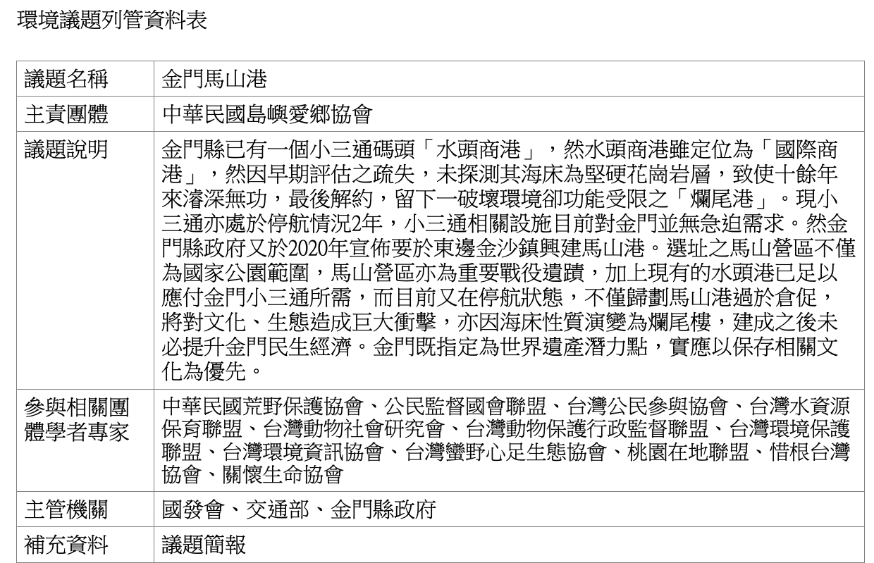 • 結論:經台灣公民參與協會判定本會訴求與本會所填資料表題目求符,不予列管